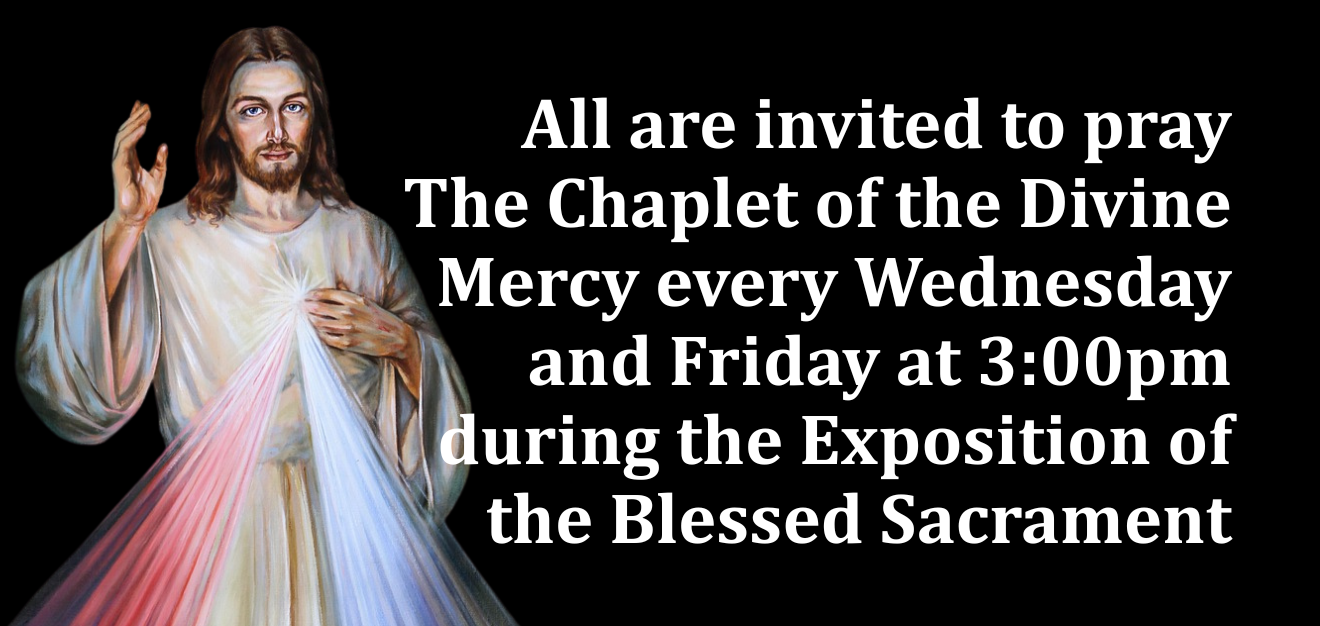 All are invited to pray the Divine Mercy Chaplet every Wednesday and Friday at 3:00pm at the Chapel.