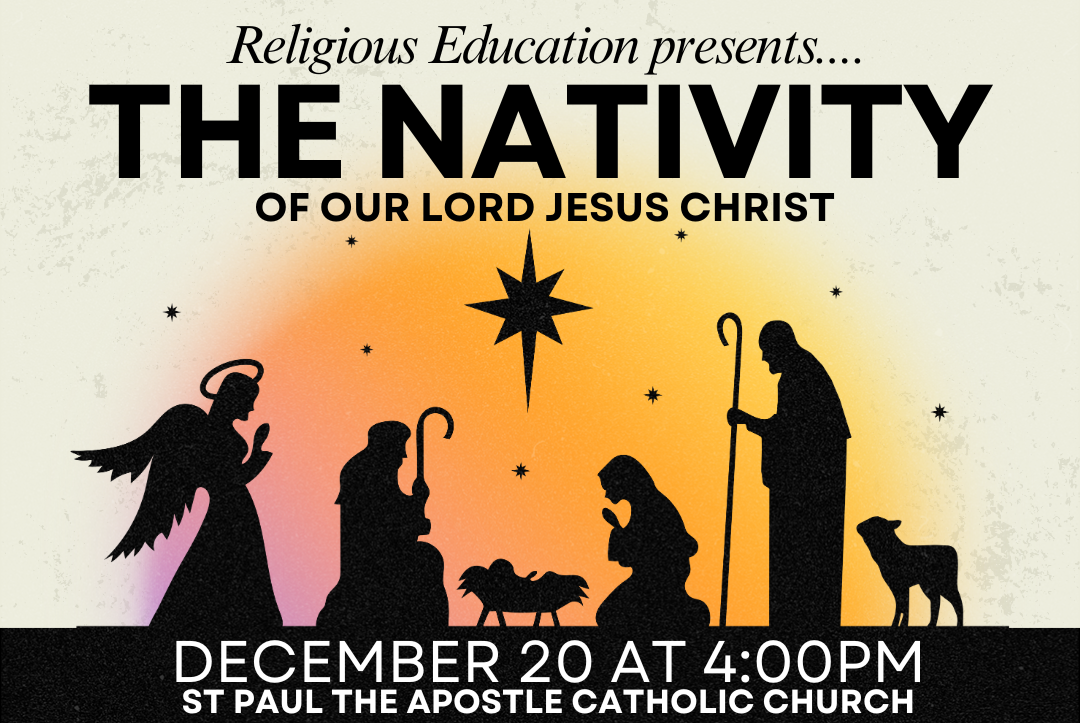 Religious Education Nativity Play will be held on December 20th at 4:00PM