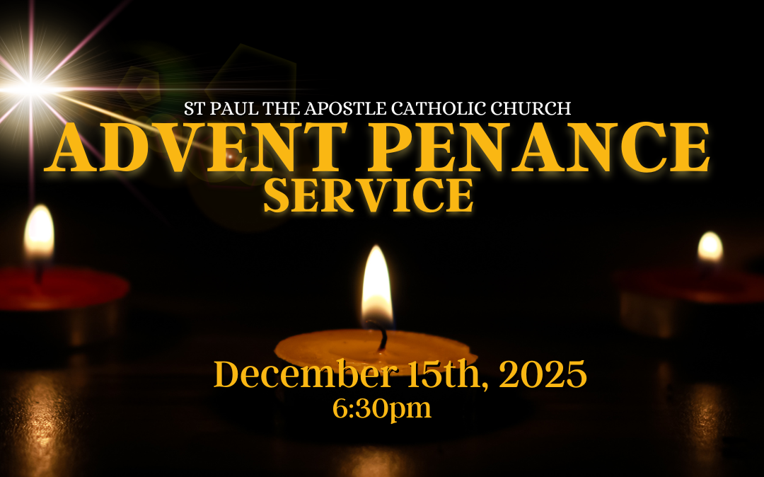 Please join us for our Annual Advent Penance Service on December 15, 2025 at 6:30pm.