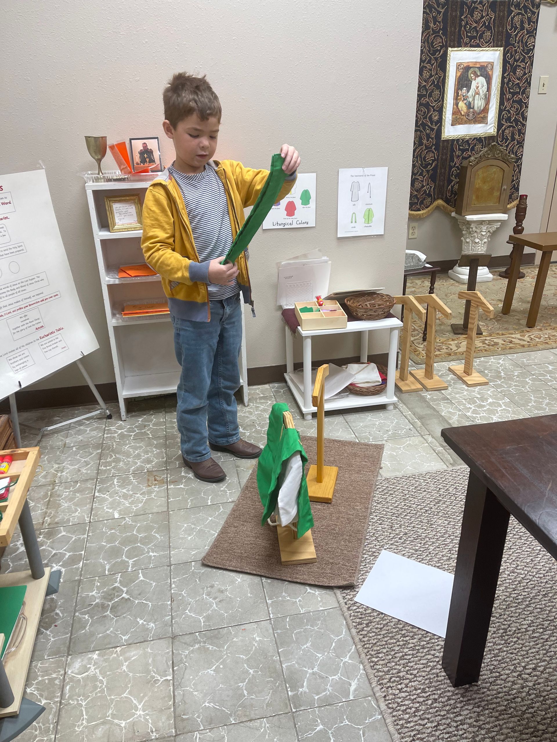 An interpersonal relationship is always a mystery, all the more so when that relationship is between God and the child. We believe that there is a deep bond between God and the child which produces in the child the desire to draw nearer to God. The catechist’s role is to prepare the environment and to give selected presentations from scripture and liturgy that “call forth” the child’s response rather than “pours in” information. The catechist listens with the child and together they ask, “God, who are you? How do you love us?” The adult reflects with the child on the questions generated by the presentations with the materials offered to the child to aid the child’s reflection.
